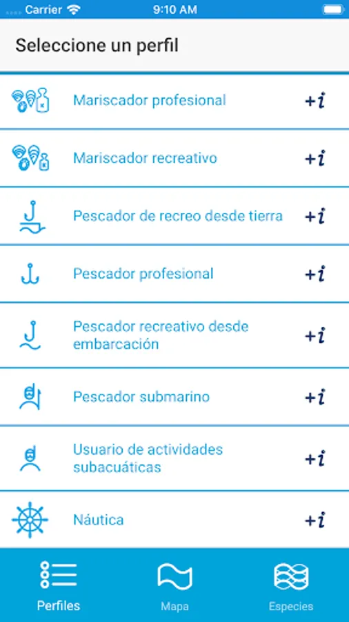 You will also obtain very useful information regarding the profile you have chosen, such as: closed seasons for shellfish species, permitted fishing gear, types of licenses required, maximum catch quotas, minimum catch sizes, general prohibitions, protected species, conditions for navigation and docking, and many more!