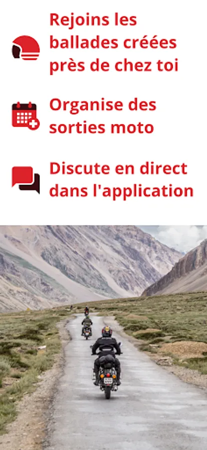 GoBikers allows you to access motorcycle rides offered by bikers around your home, organize motorcycle rides yourself, and chat directly with participants in the integrated chat.
