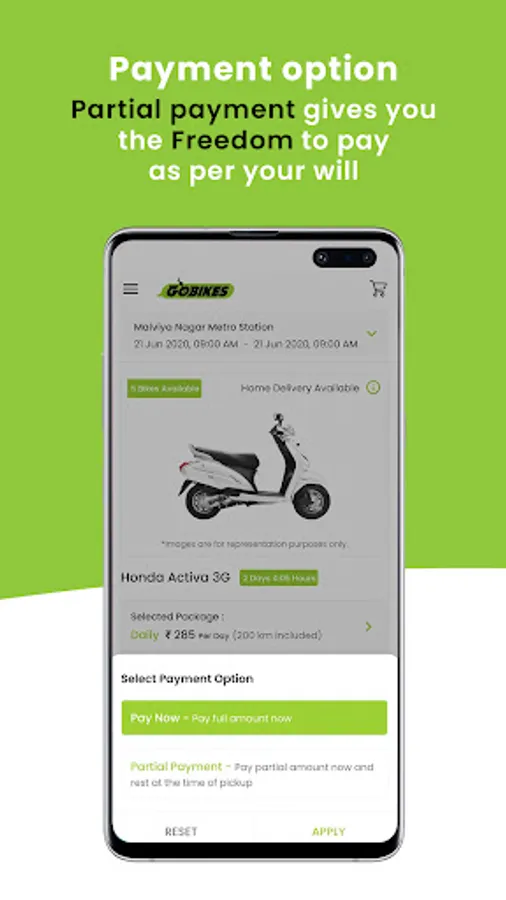 1. Find your Ride:- Enter the basic details like city, pick up and drop date, and time to choose from a list of available two-wheelers at your desired go-hub.