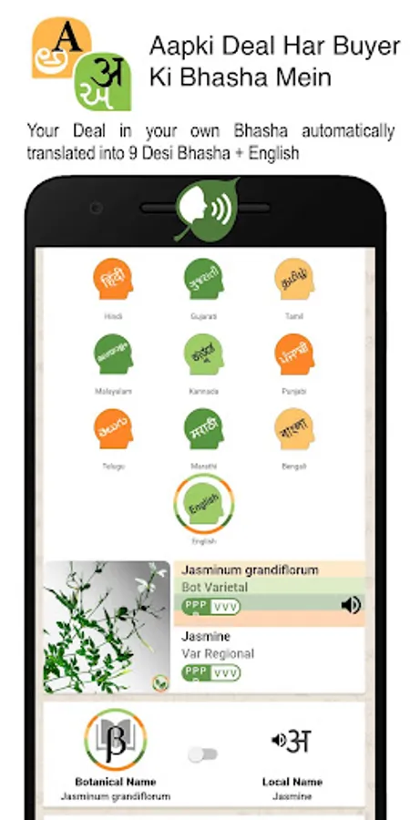 • EASY NO-TYPING APP- Semi-literate nursery workers easily use the App by listening in their own Bhasha to botanical and local plant names