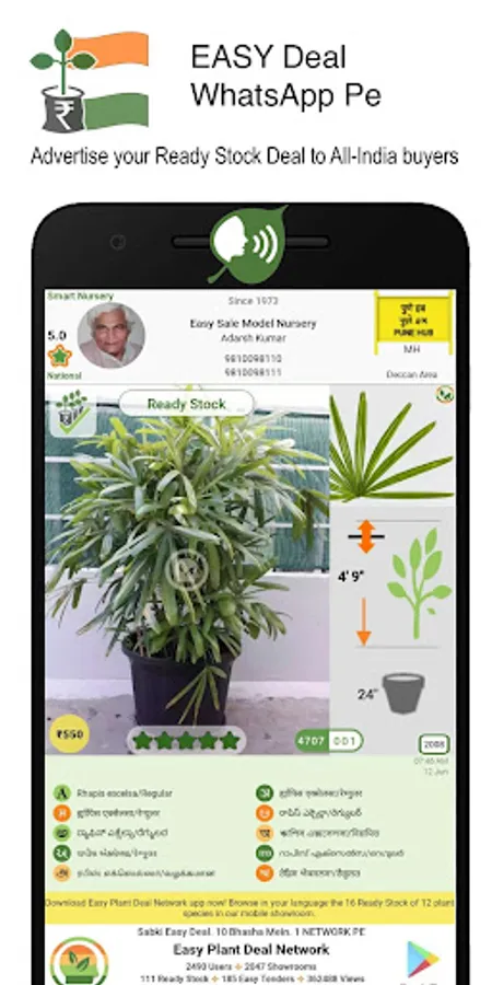 • Your easyPLANT™ showroom and plants stock is instantly searchable online by lakhs of plants buyers & sellers in English + 9 Indian Bhasha