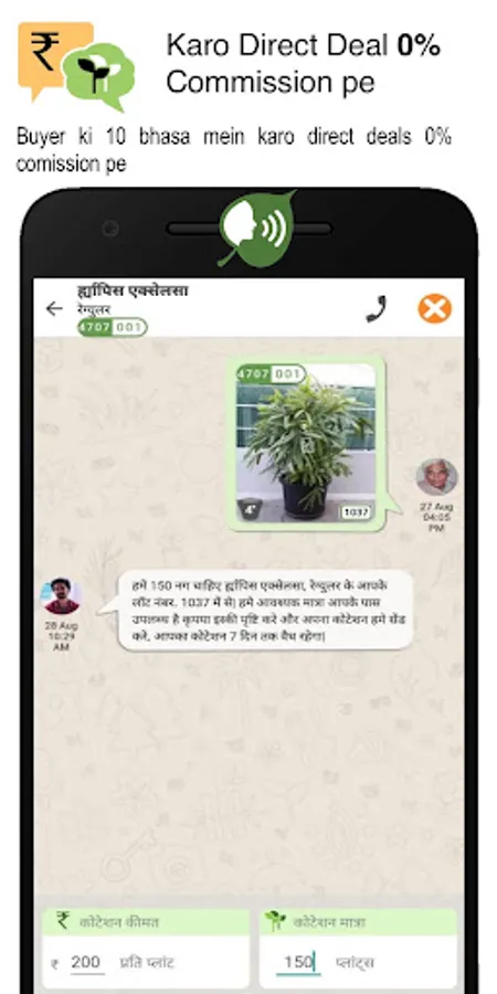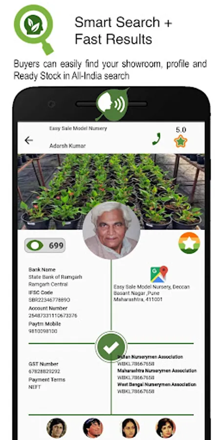 • Directly call any easyPLANT™ user by clicking his DP on the easyPLANT™ All-India phone directory. Deal with lakhs of star-rated nursery plant buyer and seller businesses on their active numbers