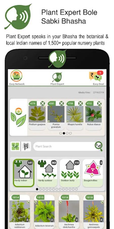 • plantEXPERT™- INDIA’S 1ST MULTIMEDIA NURSERY PLANT ENCYCLOPAEDIA: saves in your mobile the botanical & local Indian names & IDphotos of more than 1,400 popular nursery plants organised in 45 end-use market categories.