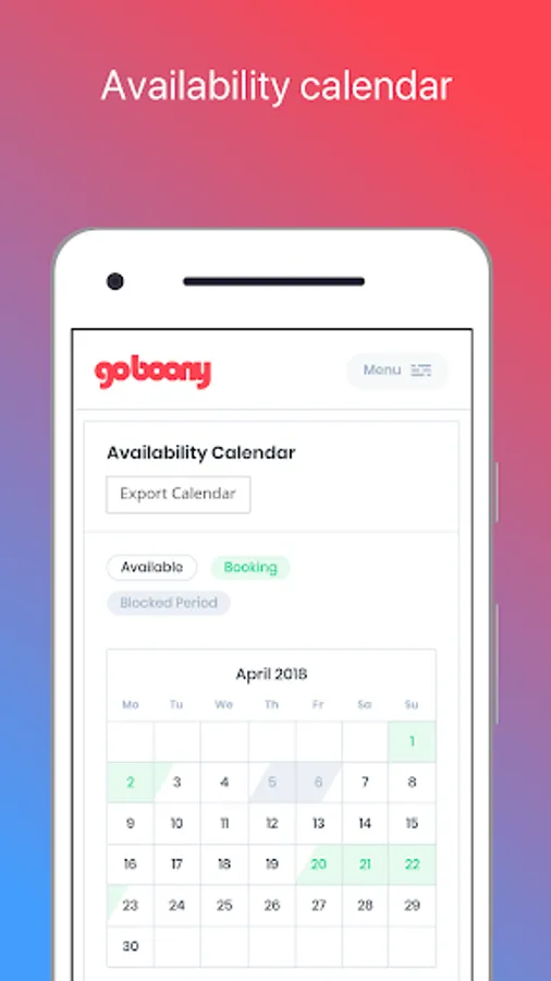 The Goboony app makes it quick and easy for you, the motorhome owner, to get in contact with potential hirers. The app contains the same features as the Goboony website for managing your bookings, only now you can do so anytime, any place! Download the app now to experience the ultimate freedom!