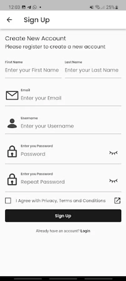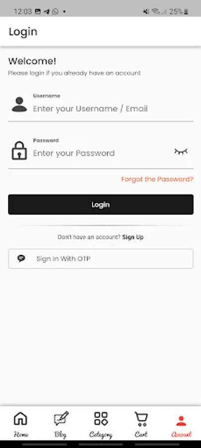 4- Log in with either the phone number or the email and the password that you registered in creating the account