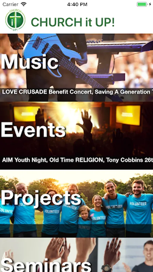 We all face many challenges in life: job troubles, relationship issues and failure. How do we get encouraged to continue? How do we get spiritually re-charged to go on and fight through the difficulties of life? The answer is………..fellowshipping with other Christians! That is our mission through the Church it Up! App. Our app will connect YOU with other believers in your area through fun Christian events that match your preference. Our app displays local Christian events such as: Musicals, Concerts, Conferences, Small Groups, Community Service Projects and much more!