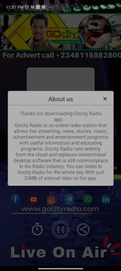 Gocity Radio is an online radio station that allows live streaming, news, stories, music, advertisement and entertainment programs with useful information and educating programs. Gocity Radio runs entirely from the cloud and replaces conventional desktop software that is still commonplace in the Radio industry. You can listen to Gocity Radio for the whole day With just 20MB of internet data on the app.