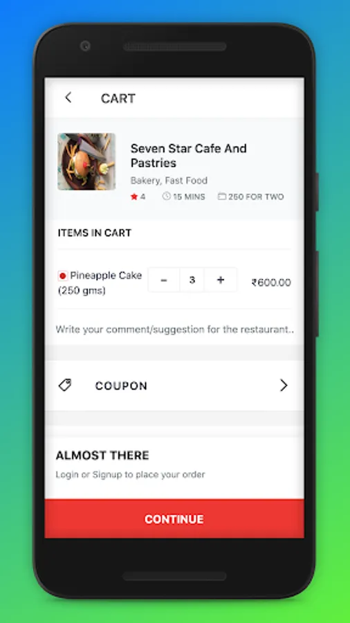 - Give a rating and leave a comment for the restaurant after you tested food.