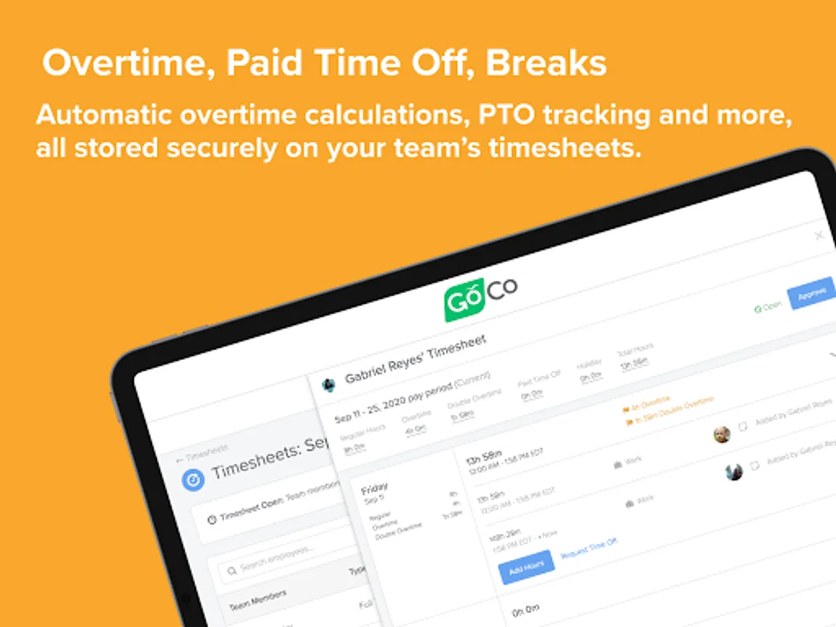 GoCo will automatically help calculate overtime hours, keep track of PTO requests and balances, automatically add holiday hours, and much more.