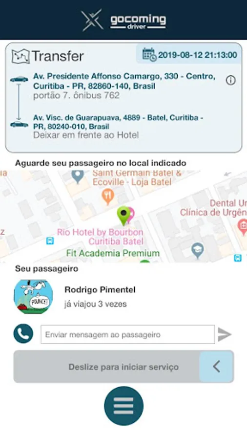 Through the app, the passenger can see in real time where the contact is waiting for him, talk with him through the app, get references of the contact and track their route during the route of the service provided.