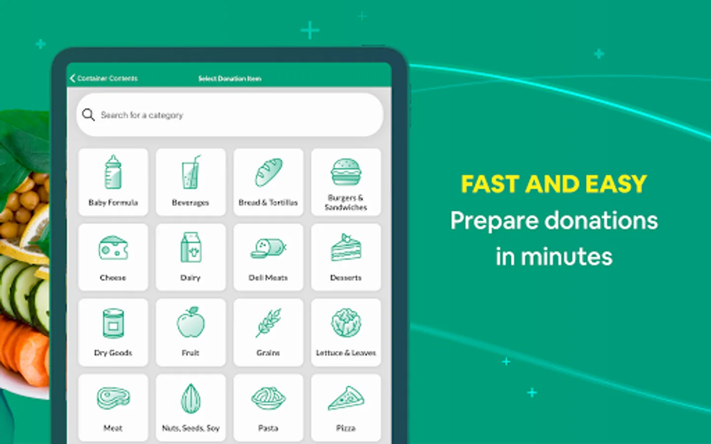 • Prepare food donations in minutes. Scan unsold inventory and edible surplus of any kind.