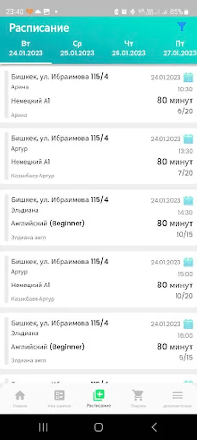 Platform for Delfi Training students. This is a client card that contains information about our student, the location of the Delfi Training office, online payment methods, a section with the latest news in our company, the number of lessons completed and remaining, homework, the ability to receive notifications and messages from the company, and much more.