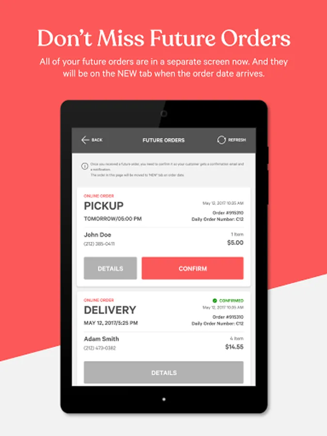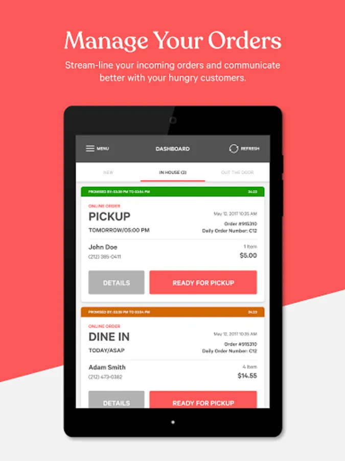 When an order is ready, update the status in-app and the customer will get notified via email or text.