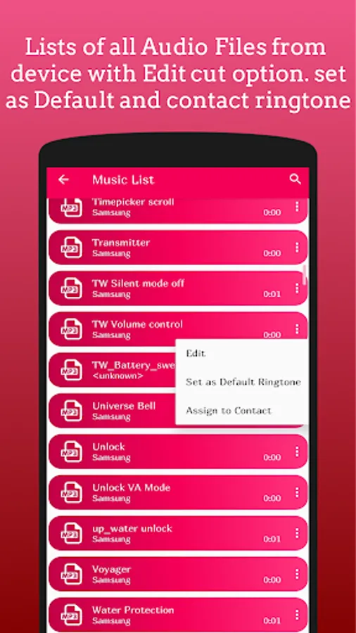 Ringtone Maker is Audio Cutter Tool For Cut Your Favorite Audio or Mp3s And make it Your Phone Default Ringtone, Contact Ringtone And Phone Notification Tone.