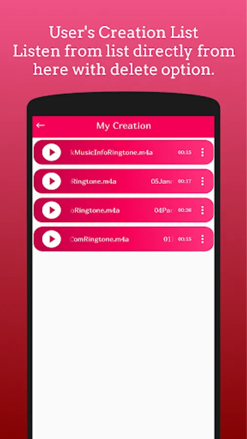 Assign a Ringtone directly to a contact, you can also re-assign or delete the Ringtone from My Creation.
