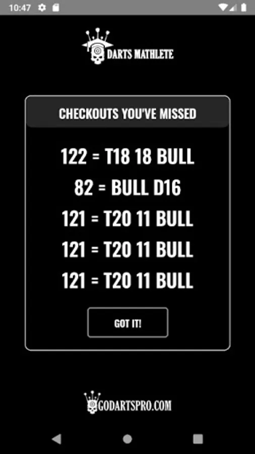 The key to practice and learn the checkouts in darts is repetition.