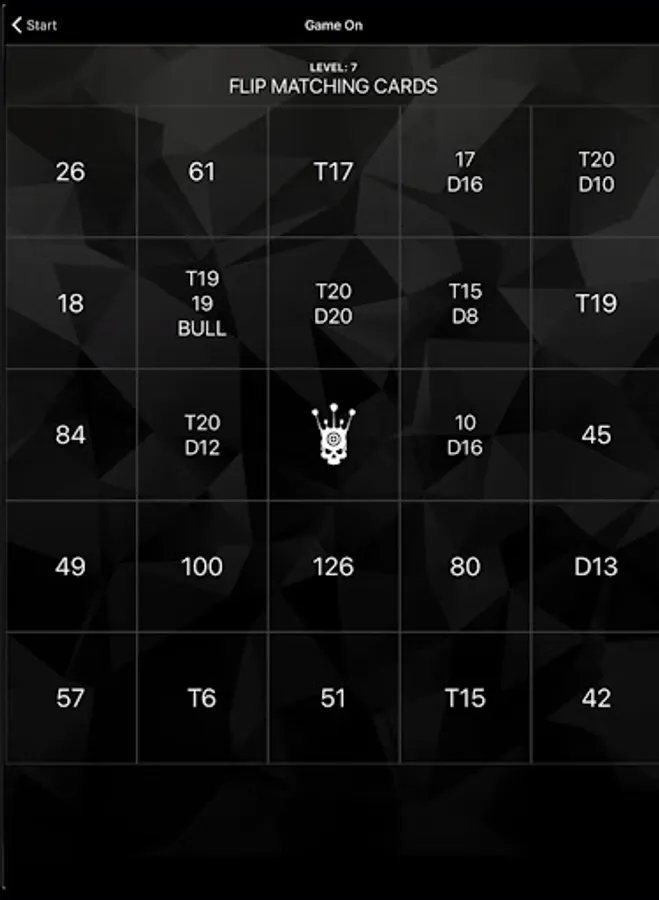 Flip the matching cards with darts outs and numbers to finish each deck.