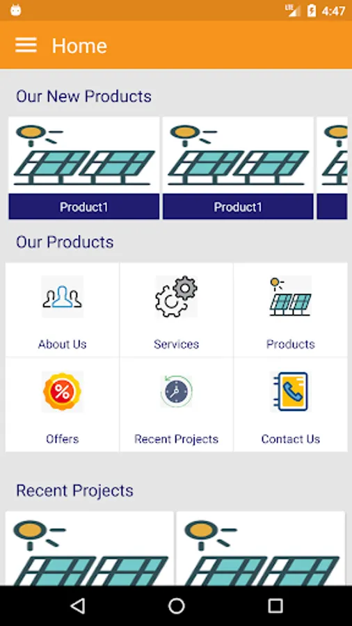 In this application, we supplies solar products. we shows you the all latest products and where we plant the products(places) etc.