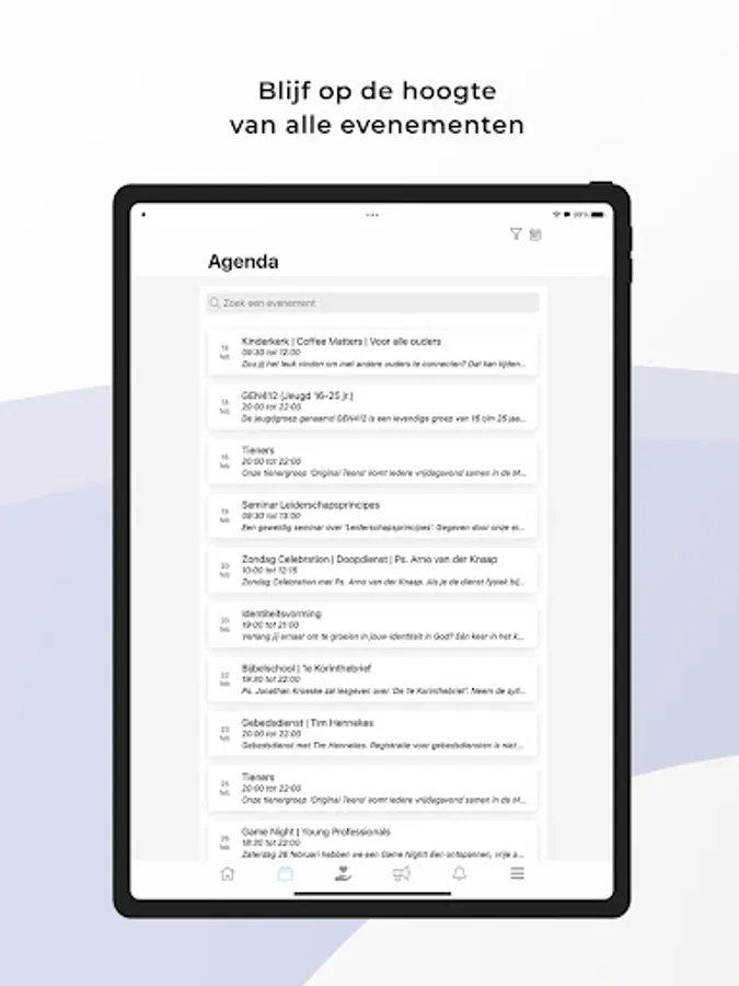 Connect with other congregation and group members, listen to the latest sermons and always have the agenda at hand. In the GODcentre App you will also find all 'My GODcentre' functionalities.