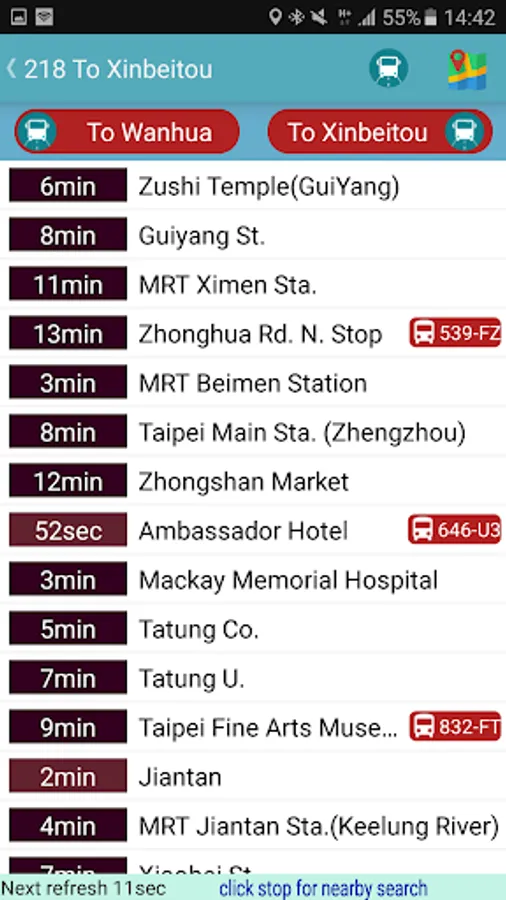- Provide next coming bus time for the nearby bus stops, sorted by the arrival time