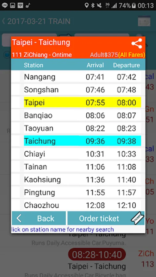 - You can share the train timetable to a friend to his(her) LINE chat or EMAIL