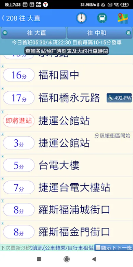 -Background service: Additional background query service (common stop sign/bus tracking/arrival reminder/...) is provided, even if the APP is closed, the bus dynamics can be inquired at any time, without affecting the current operating foreground APP (for example: browsing the web )