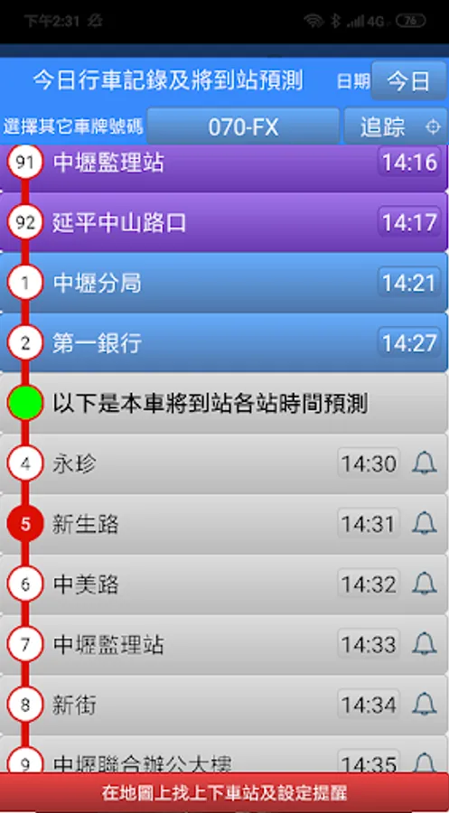 -You can specify the license plate to see the arrival time prediction of each station of the bus, allowing you to track when and which station the bus will arrive at any time