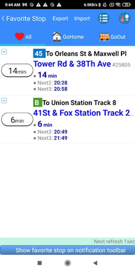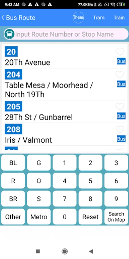 - Searching specific bus information by using route number, stop number, or partial stop name