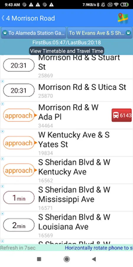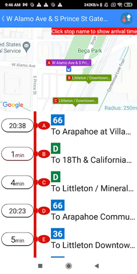 - Click on a specific route to further display all stop sequence and their estimated arrival times