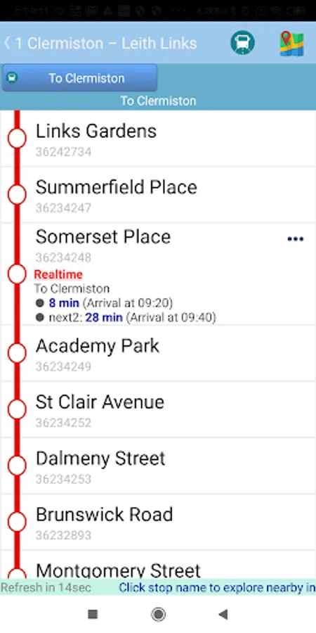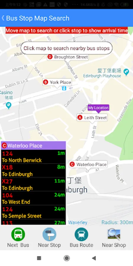 - Provide nearby stop locations in a map. Click on the map to select a specific stop. You can explore all bus routes via the stop