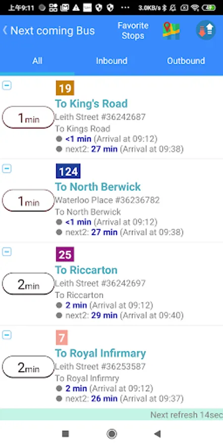 - Click on a specific route to further display all stop sequence and their estimated arrival times