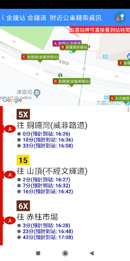 Provide route information for Hong Kong Bus/Tram/Ferry