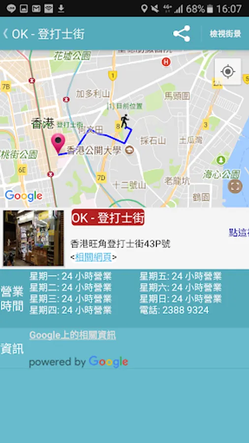 - Provide POI maps and street views. It also indicates the best route from current location (walking or cycling)