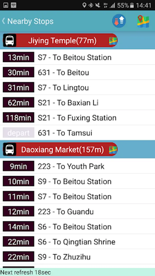 - Provide next coming bus time for the nearby bus stops, sorted by the arrival time