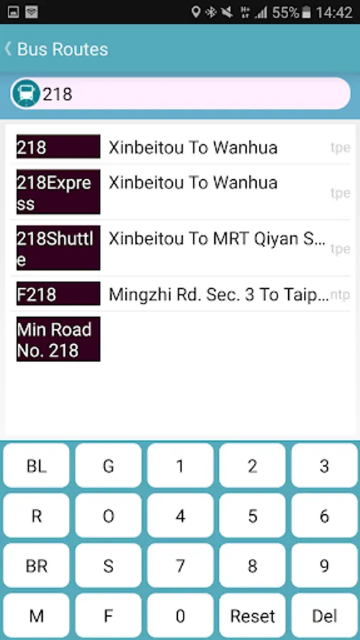 - Query specific bus route information by using route number or bus stop name ( or keywords)