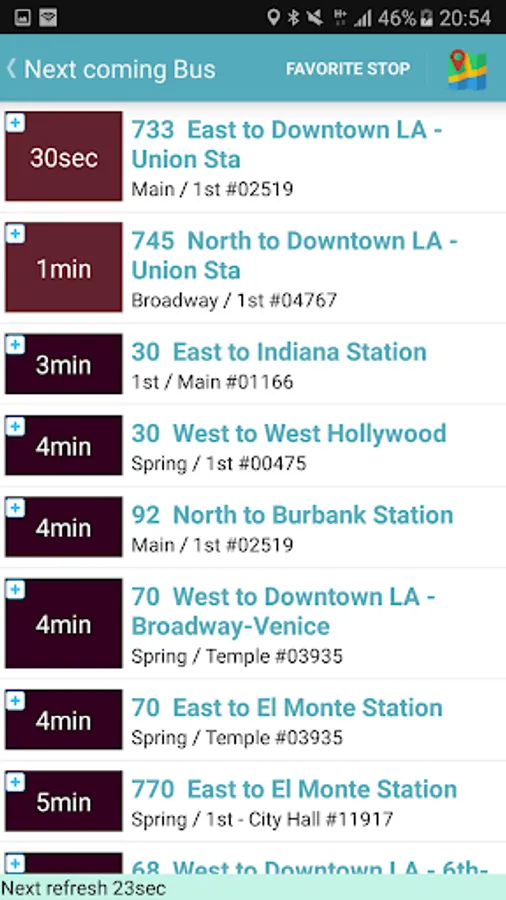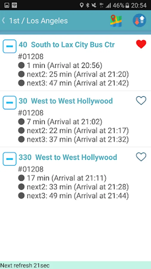 - Click on a specific route to further display all stop sequence and their estimated arrival times