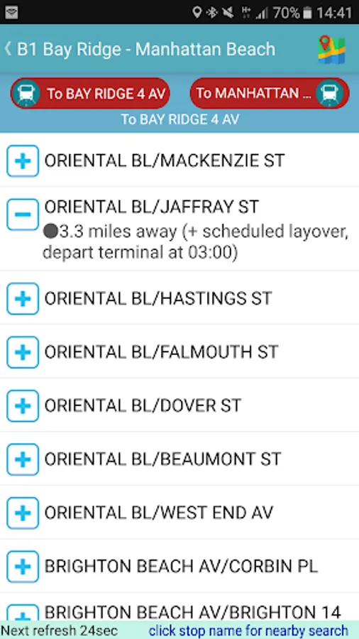 - Provide nearby stop locations in a map. Click on the map to select a specific stop. You can explore all bus routes via the stop