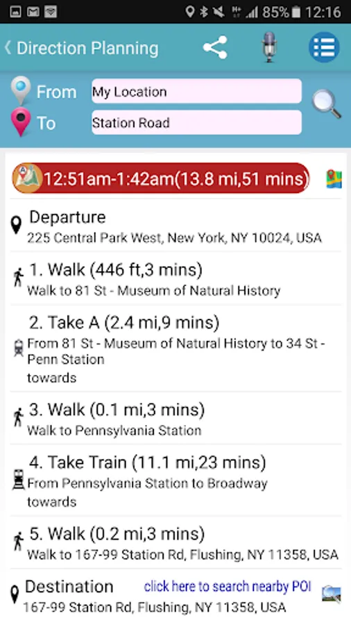 - By clicking on a specific stop, you can further explore the stop nearby POI, such as food, restaurants, attractions and other store information.