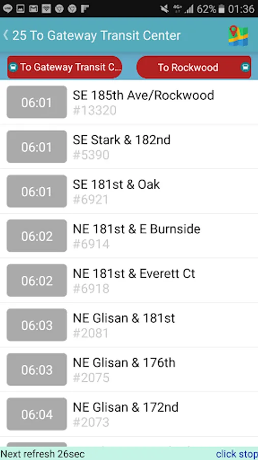 - Click on a specific route to further display all stop sequence and their estimated arrival times