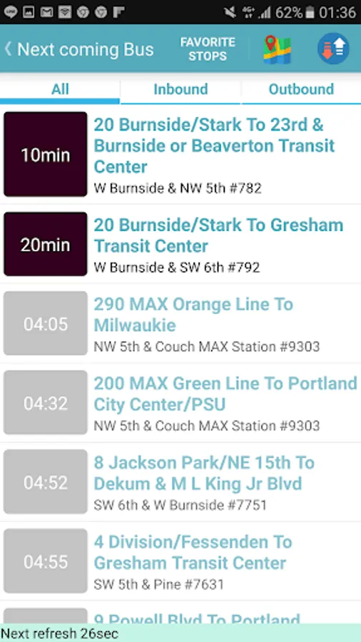 Provide arrival time predictions for Portland bus.