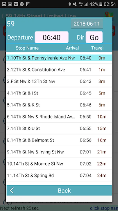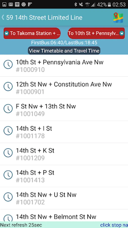 - Click on a specific route to further display all stop sequence and their estimated arrival times