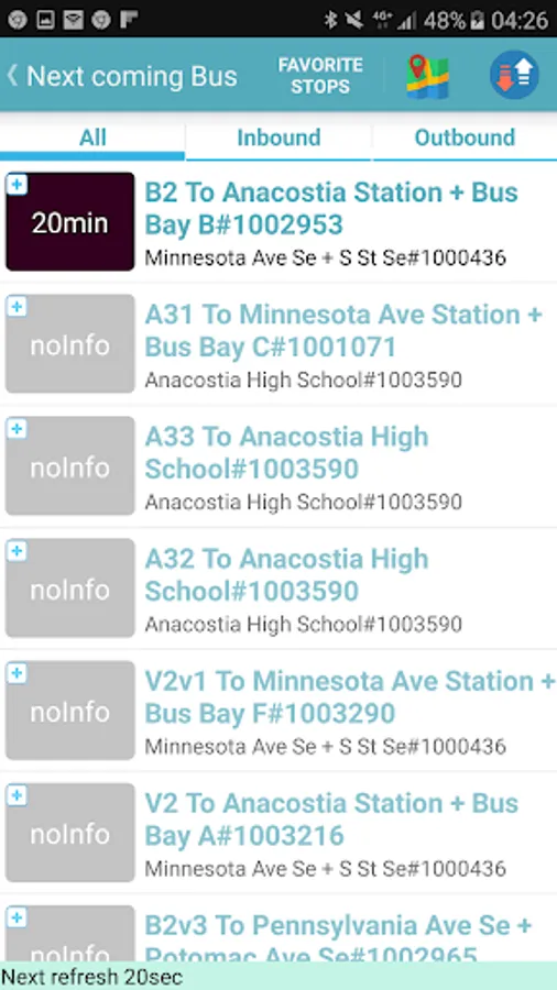 - Searching specific bus information by using route#, stop#, or partial stop name