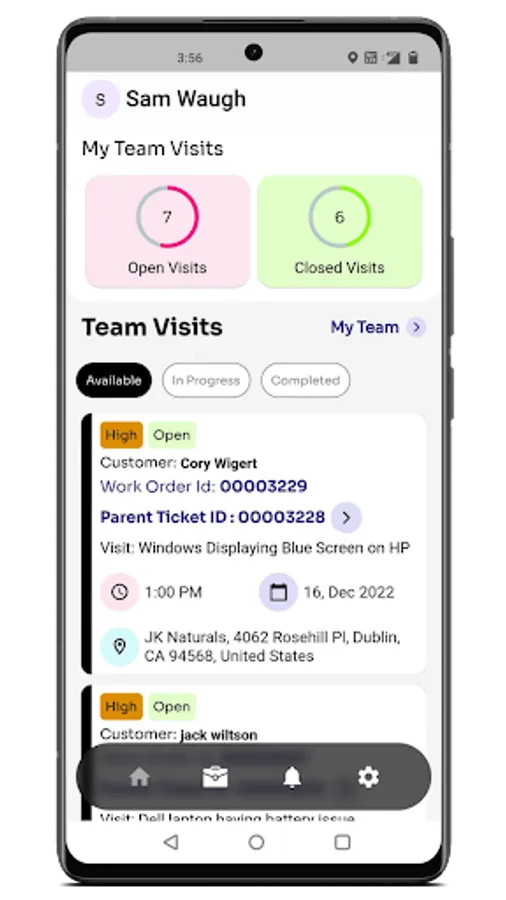 Field Service Agents can view their field assignments, have access to their calendars and execute various tasks that drive service resolution. These include, but are not limited to taking pictures, creating work logs, capturing signatures on the glass, collaborating visually via video-chat with their peers as well as team leads.