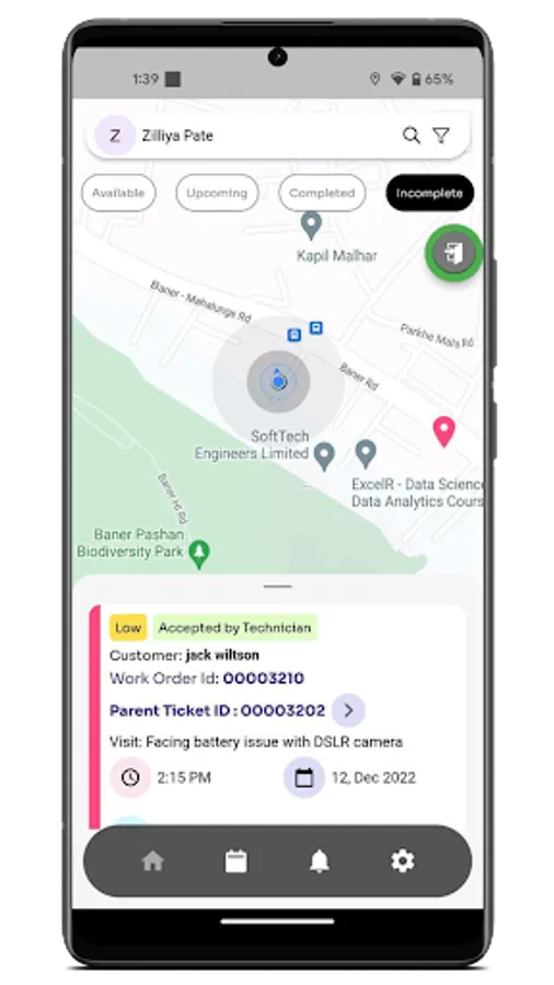 A unique Dashboard provides a holistic view of work assignments. Field technicians can view their service schedule for a Customer and/or location and also review the service history at a glance. This is especially important for the industries that include preventive maintenance business processes.