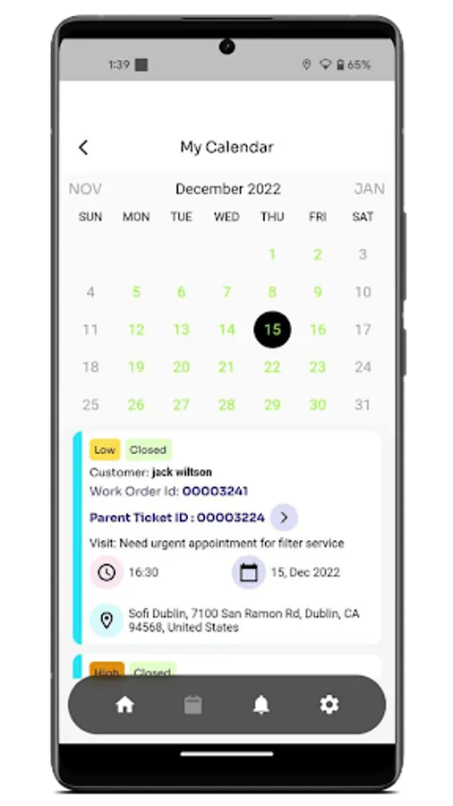 • Calendar display of service requests/work-orders
