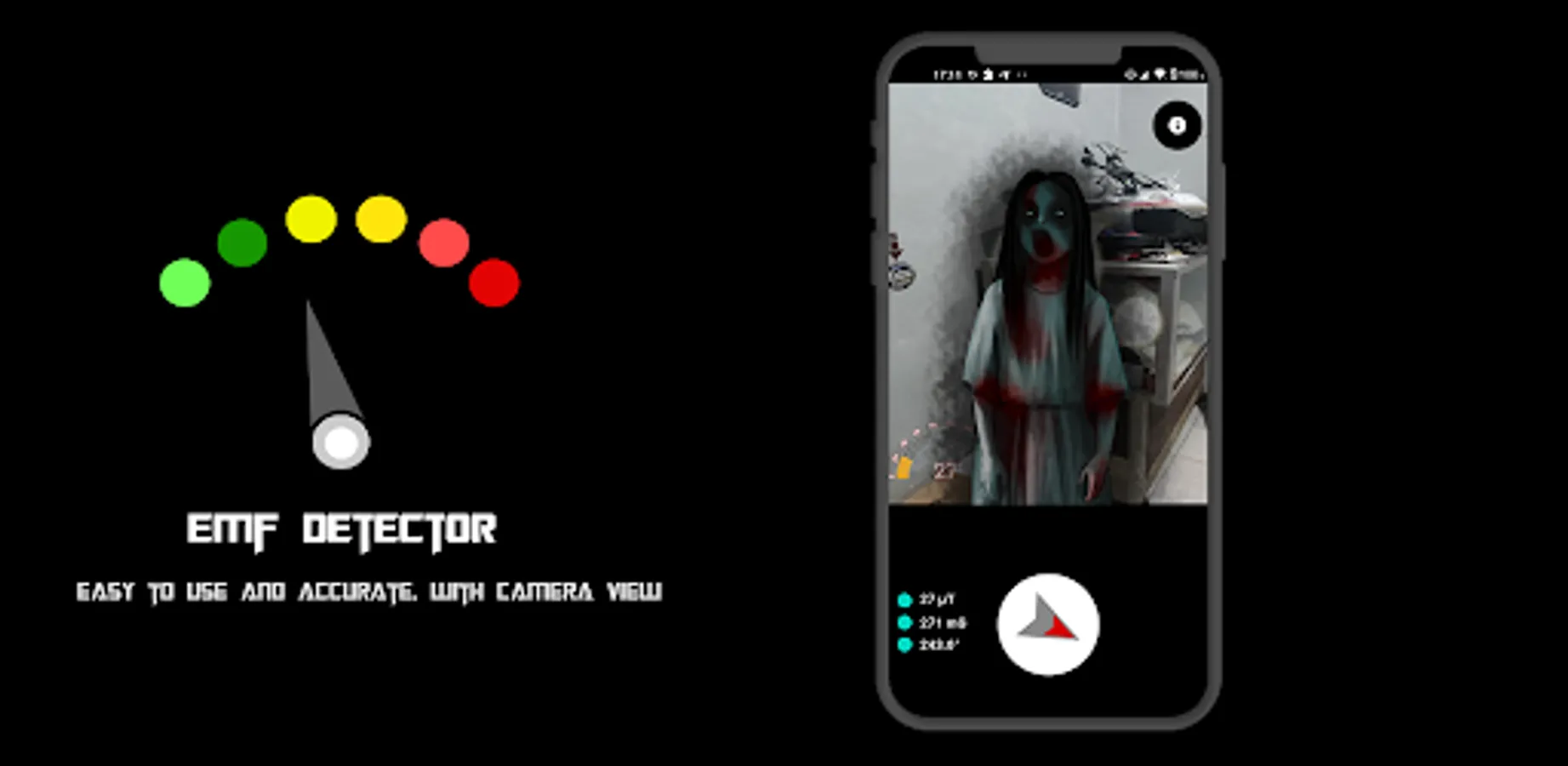 Ghost camera with real ghost hunting tools (EMF Detector using built in Android Devices Magnetic Sensor) for detection and communication.