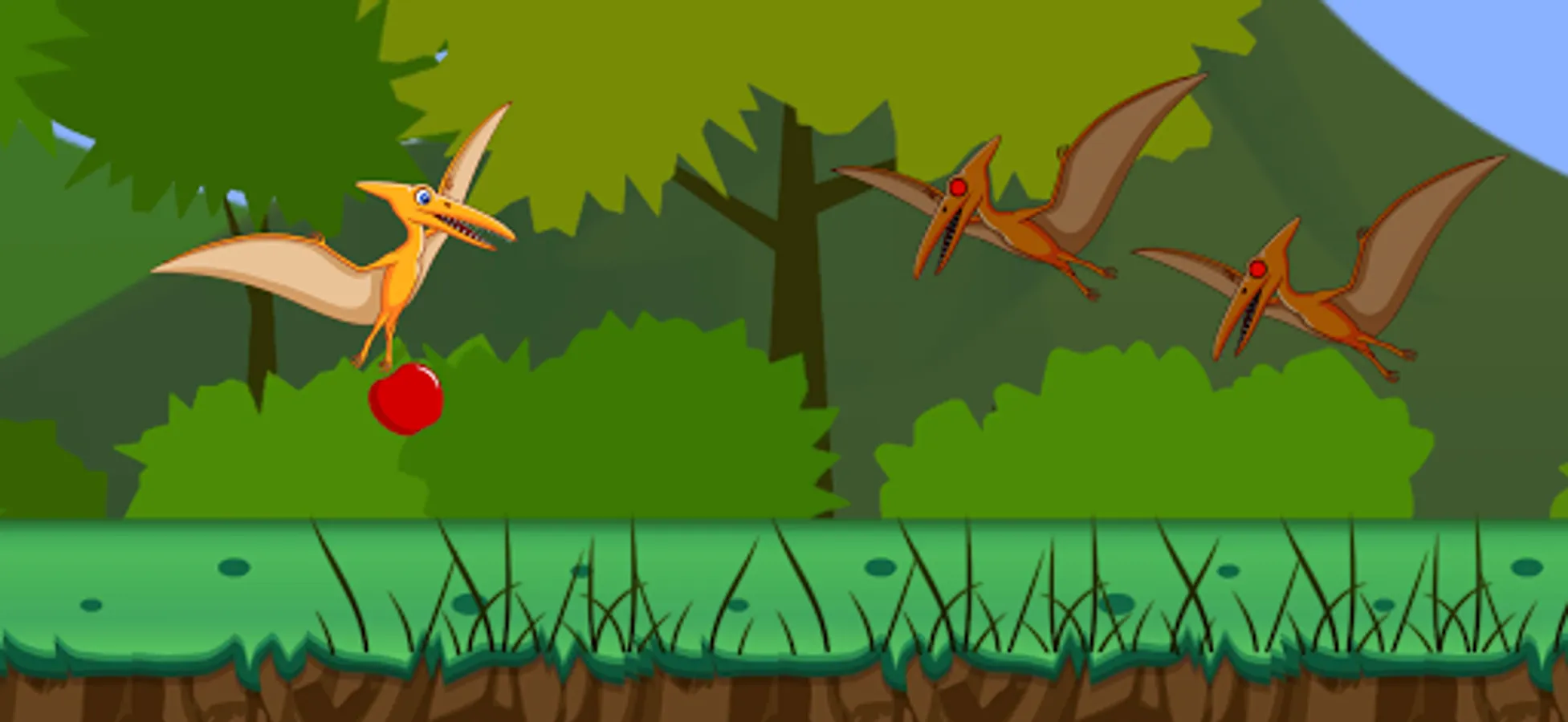 Eat all the apples that flying in the sky, and avoid to crash on another pterodactyls..