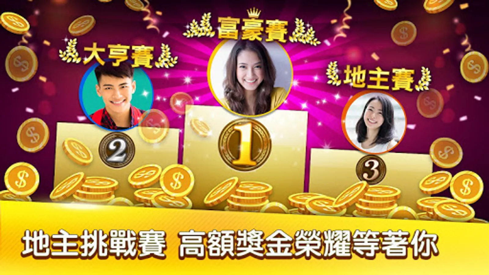 ♣ Landlord挑戰賽:地主賽、富豪賽、大亨賽,快來領取彩金獎勵