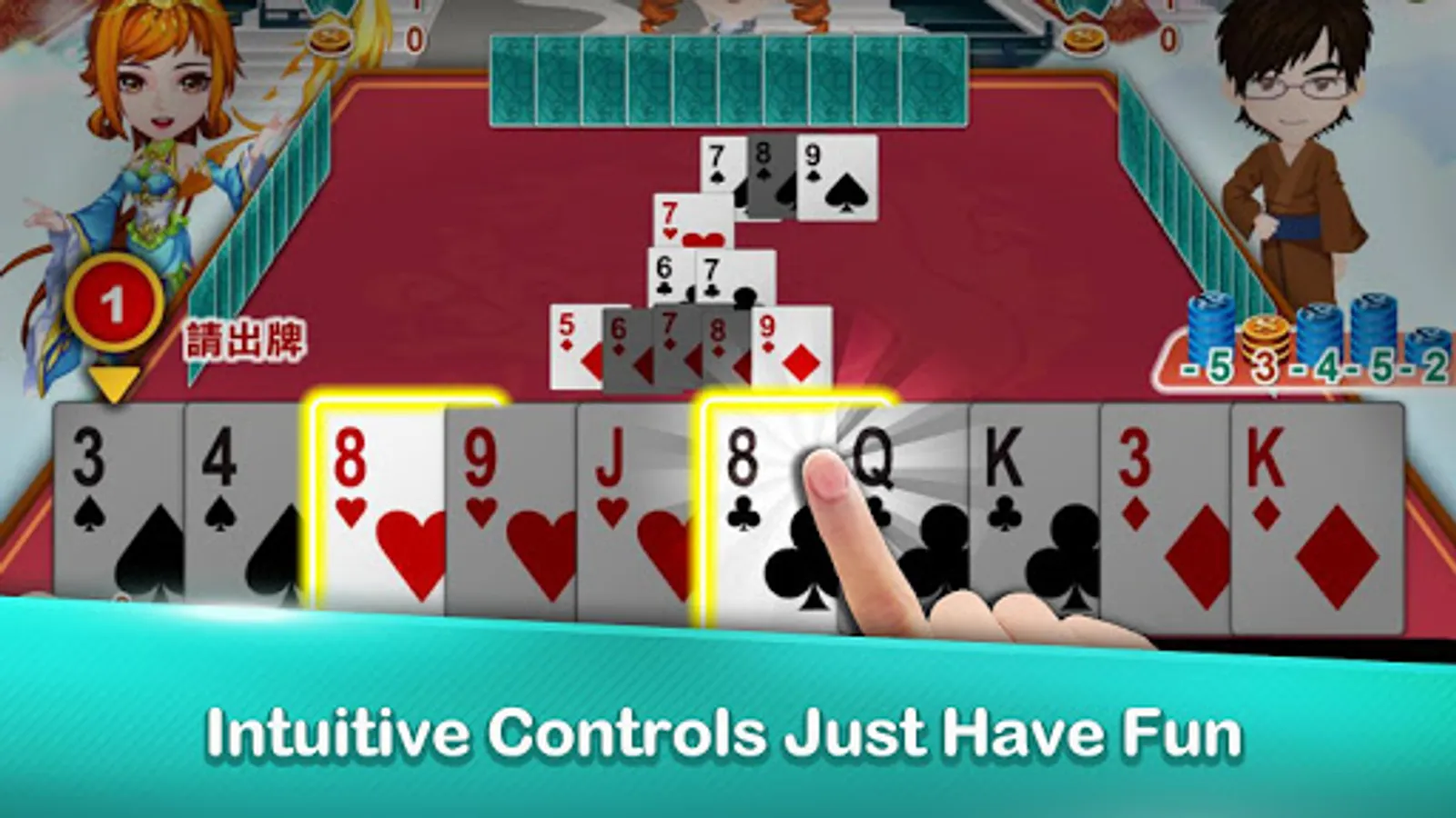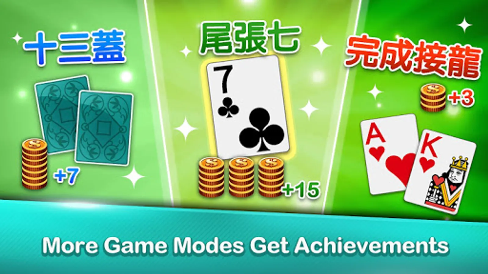 ♦ Dragon's Head mode: be the first to place K or A in a same-suit pile and complete it to get extra points!