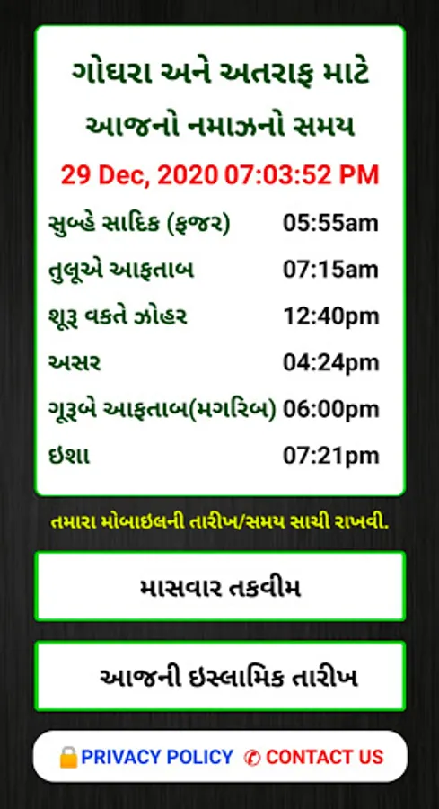 Godhra Taqweem Application Thi Tame Godhra Saher Ane Tena Aas Pass Na Gamo Temaj Shaero Mate Namaz Nu Time Table Aasani Thi Jani Shakho Cho Je Latest Ganatri Par Aadharit Che